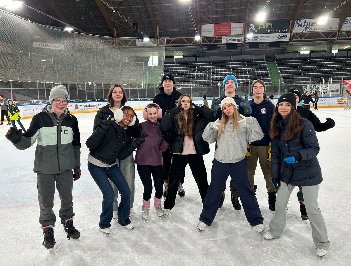 Was für ein Erlebnis! Kurz vor 8 Uhr holten uns zwei Busse der Busbetriebe Olten Gösgen Gäu ab und brachten uns zur Eishalle in Olten. Dort erhielten die Schülerinnen und Schüler klassenweise ihre Schlittschuhe, zogen sich um und stürzten sich auf die Eisfelder der Kunsteisbahn Kleinholz.